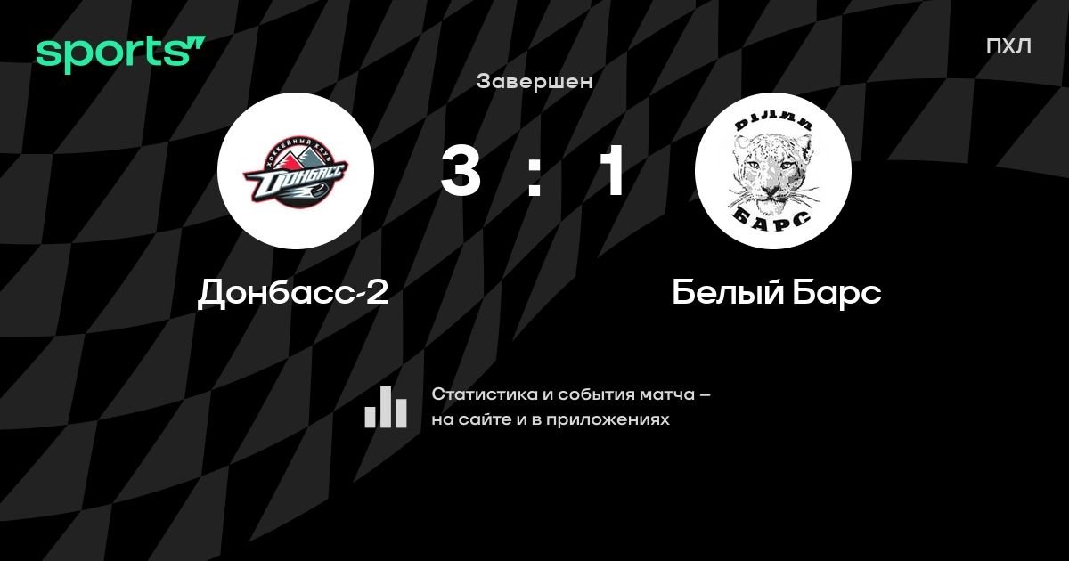 В прошедшем матче в рамках турнира ПХЛ Второй раунд состоялась встреча команд Донбасс-2 - Белый Барс со счетом 3 : 1.
