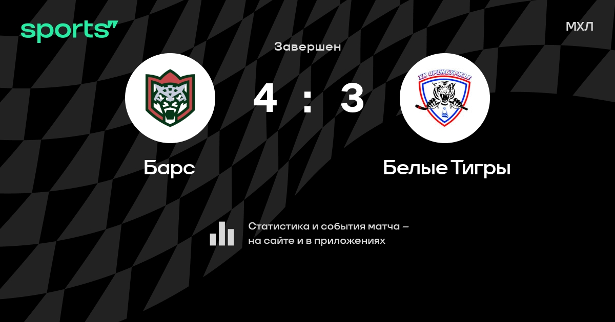 В прошедшем матче в рамках турнира МХЛ состоялась встреча команд Барс - Белые Тигры со счетом 4 : 3.
