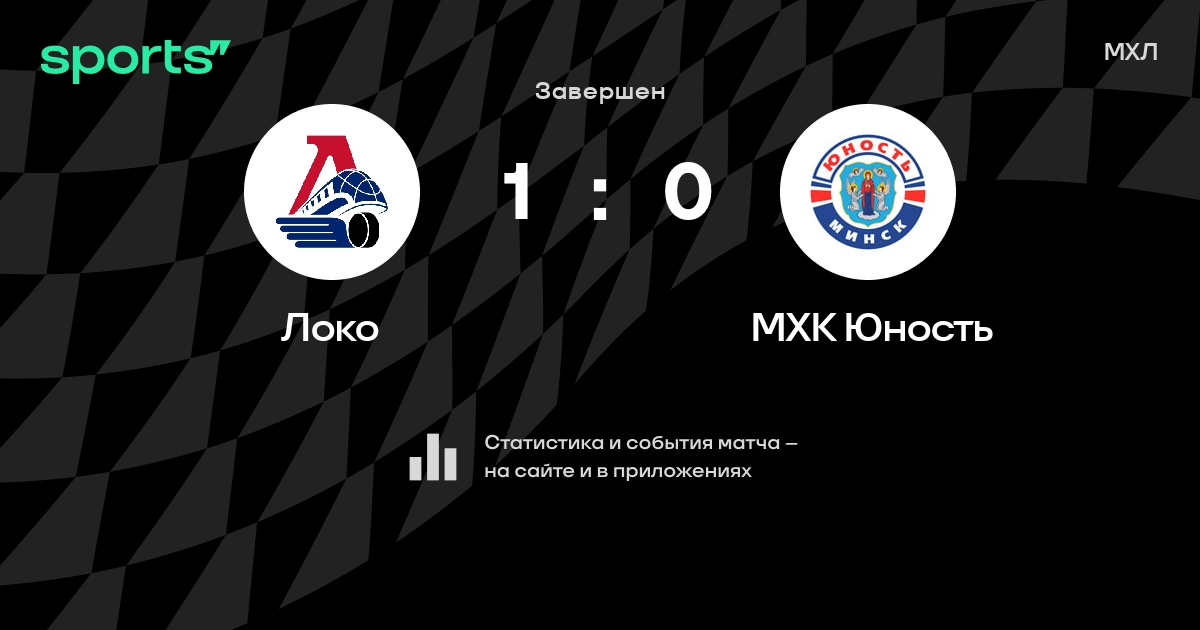 В прошедшем матче в рамках турнира МХЛ состоялась встреча команд Локо - МХК Юность со счетом 1 : 0.