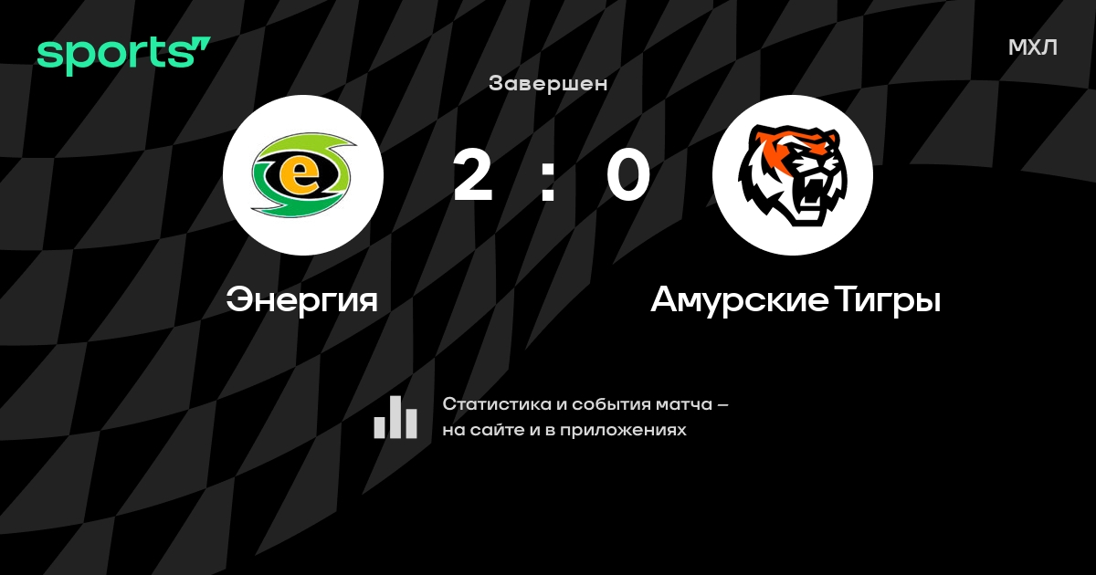 В прошедшем матче в рамках турнира МХЛ состоялась встреча команд Энергия - Амурские Тигры со счетом 2 : 0.