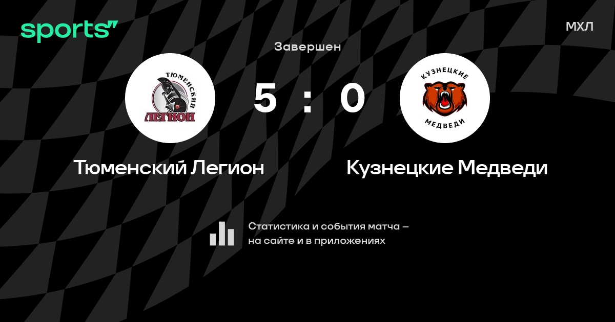 В прошедшем матче в рамках турнира МХЛ состоялась встреча команд Тюменский Легион - Кузнецкие Медведи со счетом 5 : 0.