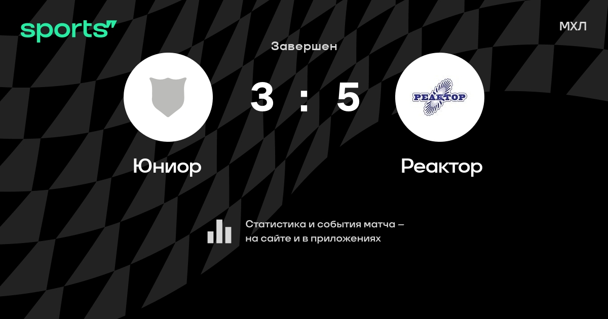 В прошедшем матче в рамках турнира МХЛ состоялась встреча команд Юниор - Реактор со счетом 3 : 5.