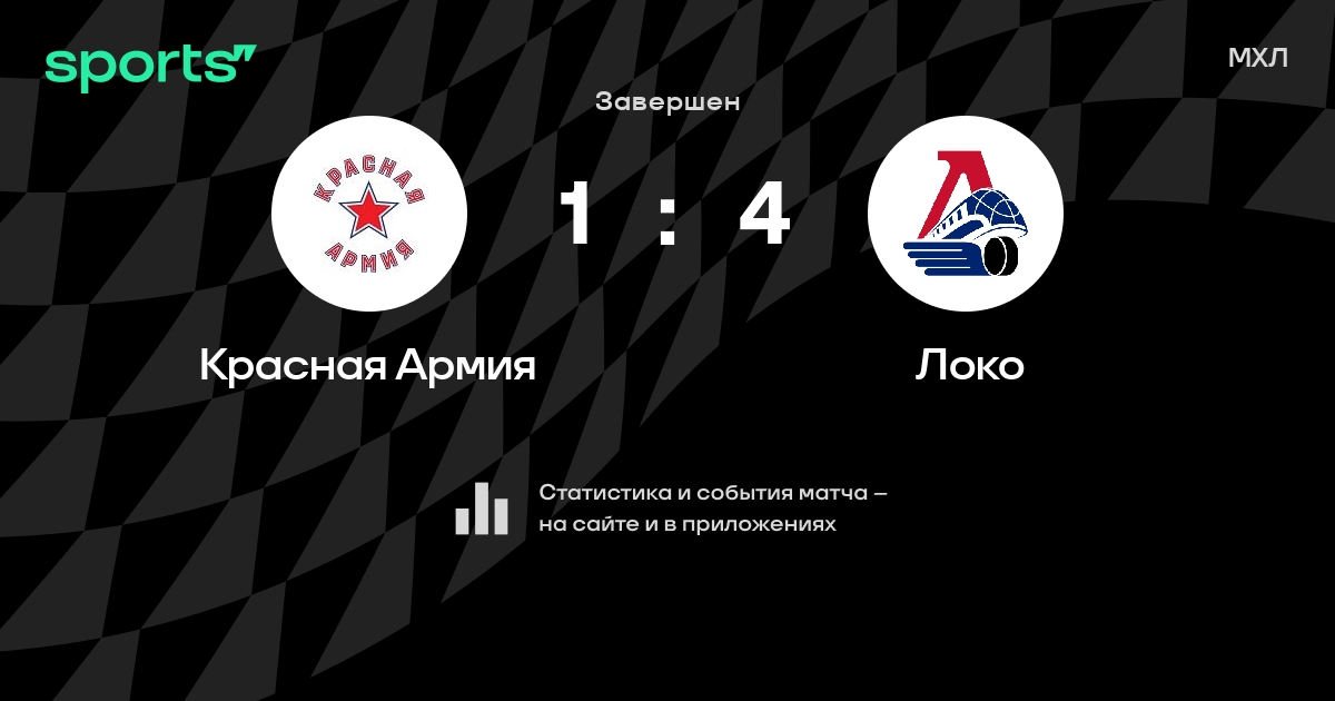 В прошедшем матче в рамках турнира МХЛ состоялась встреча команд Красная Армия - Локо со счетом 1 : 4.