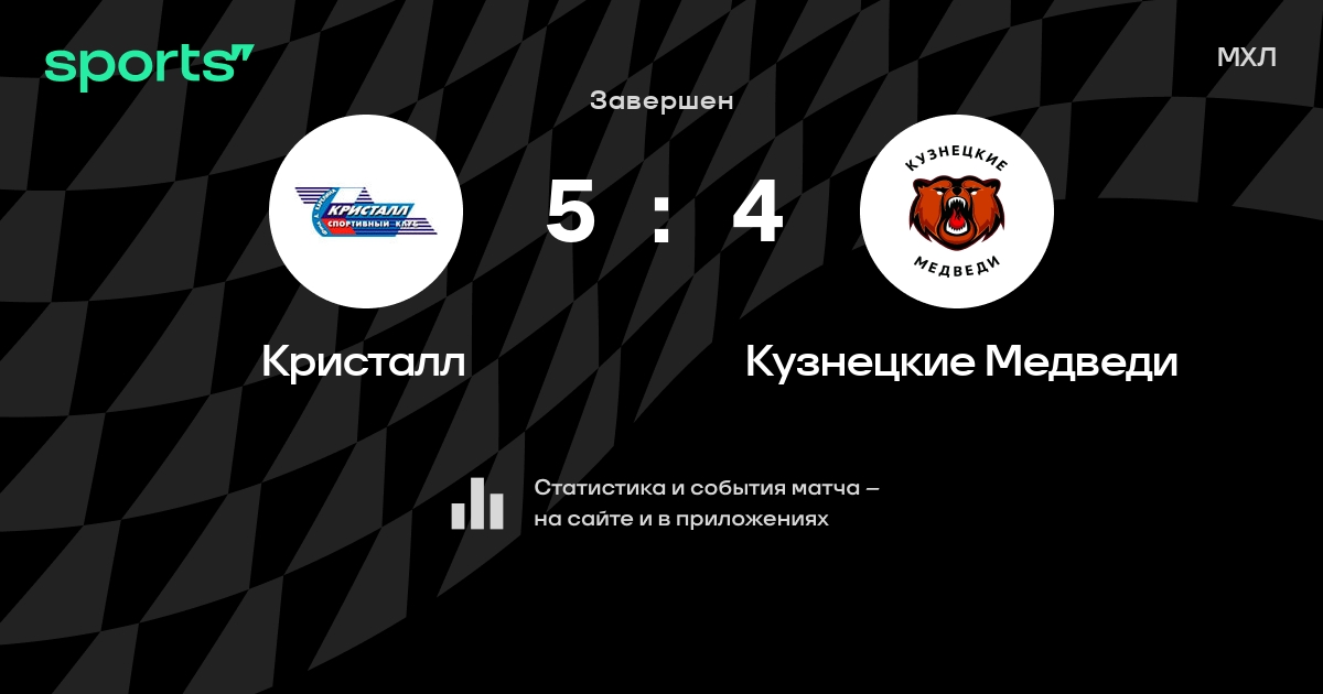 В прошедшем матче в рамках турнира МХЛ состоялась встреча команд Кристалл - Кузнецкие Медведи со счетом 5 : 4.