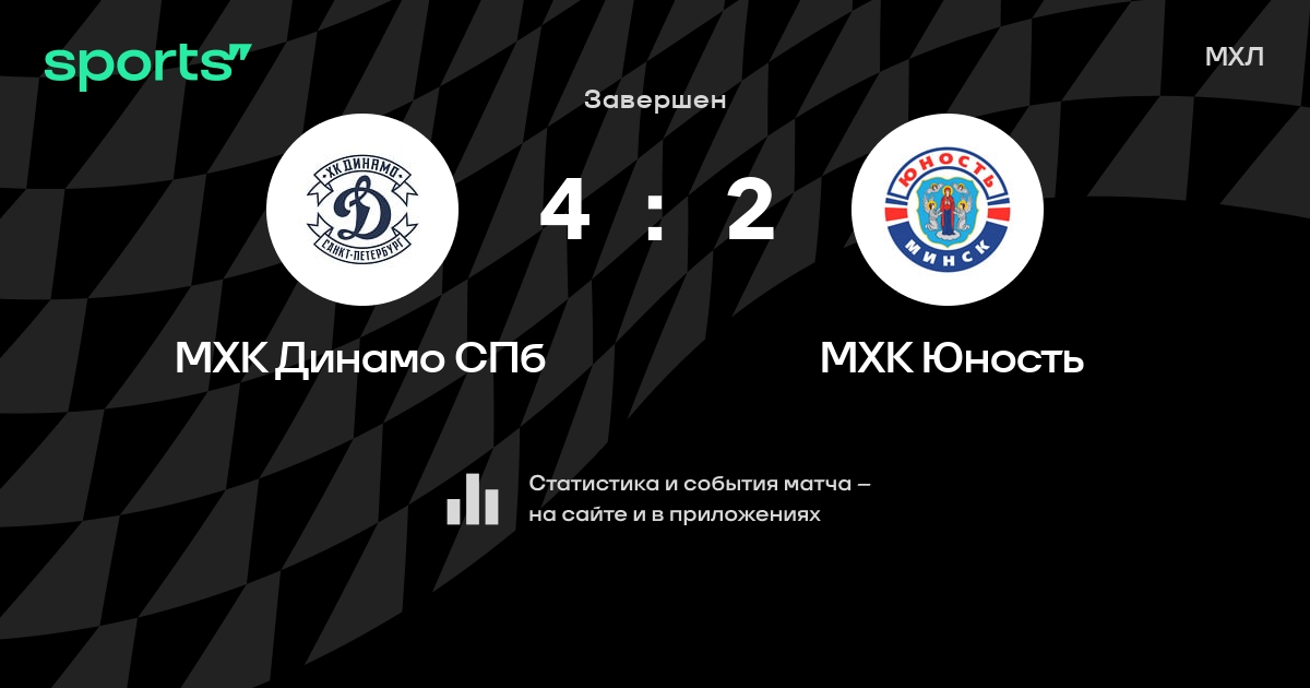 В прошедшем матче в рамках турнира МХЛ состоялась встреча команд МХК Динамо СПб - МХК Юность со счетом 4 : 2.