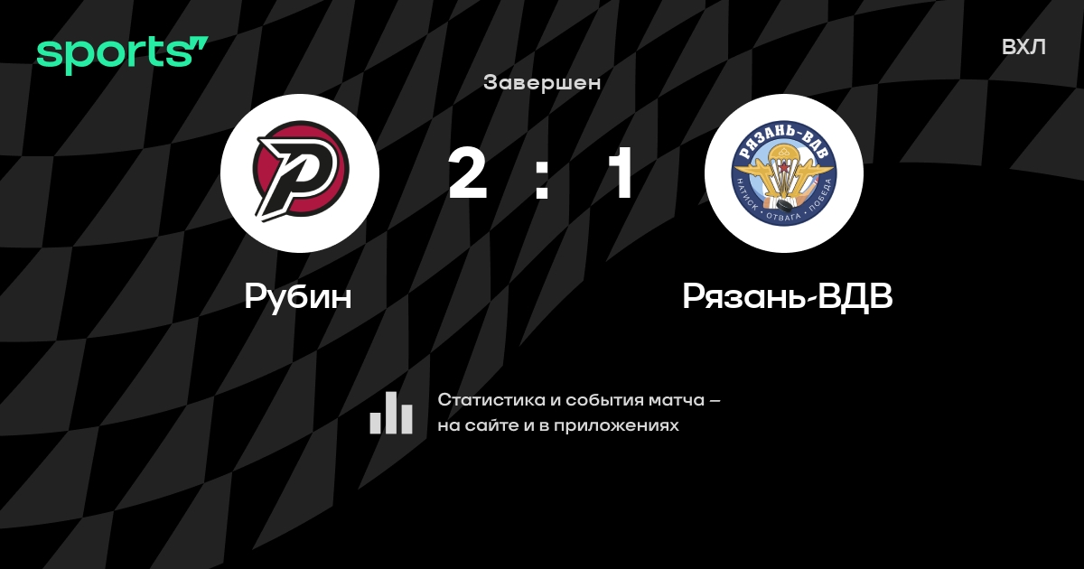 В прошедшем матче в рамках турнира ВХЛ состоялась встреча команд Рубин - Рязань-ВДВ со счетом 2 : 1.