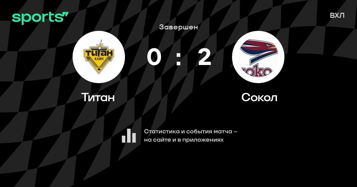 В прошедшем матче в рамках турнира ВХЛ состоялась встреча команд Титан - Сокол со счетом 0 : 2.