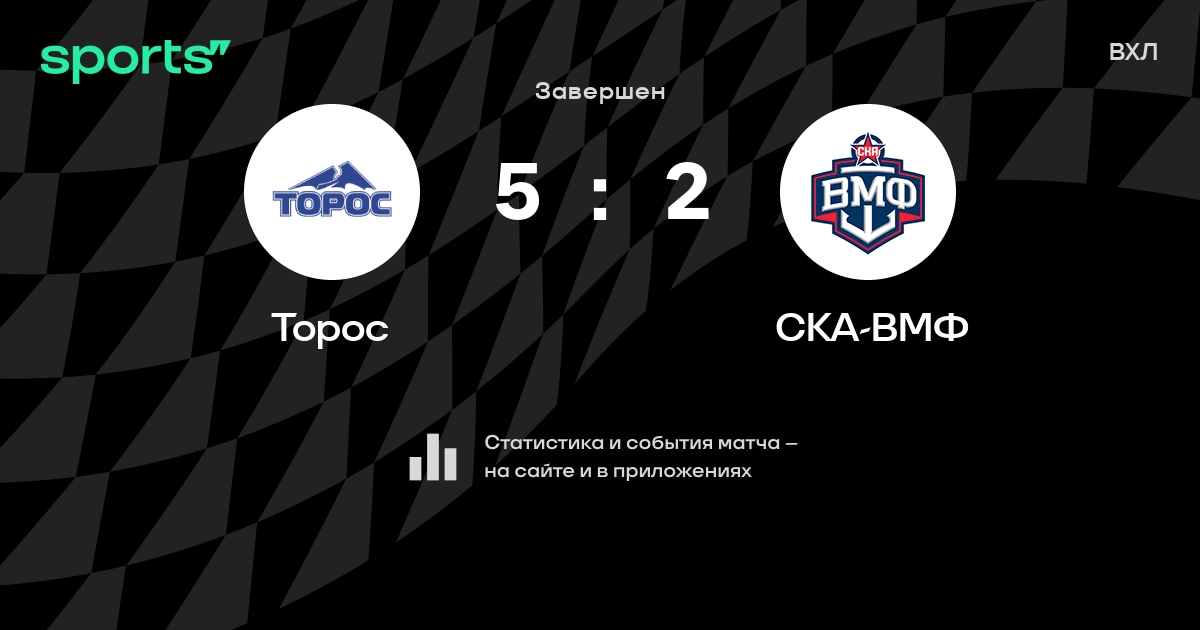 В прошедшем матче в рамках турнира ВХЛ состоялась встреча команд Торос - СКА-ВМФ со счетом 5 : 2.