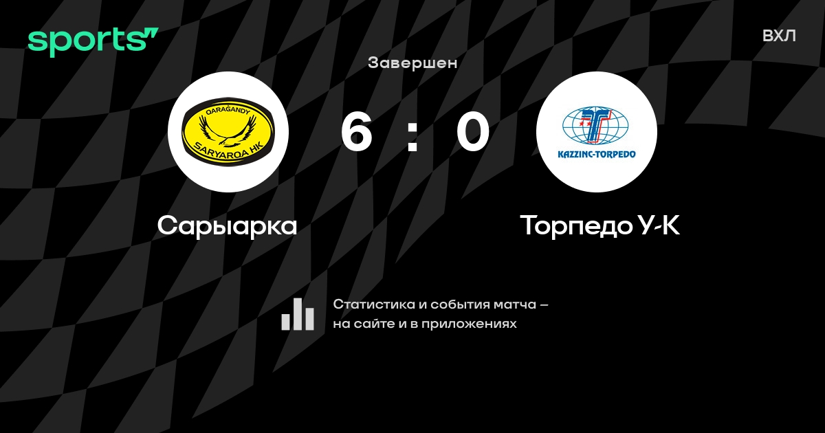 В прошедшем матче в рамках турнира ВХЛ состоялась встреча команд Сарыарка - Торпедо У-К со счетом 6 : 0.