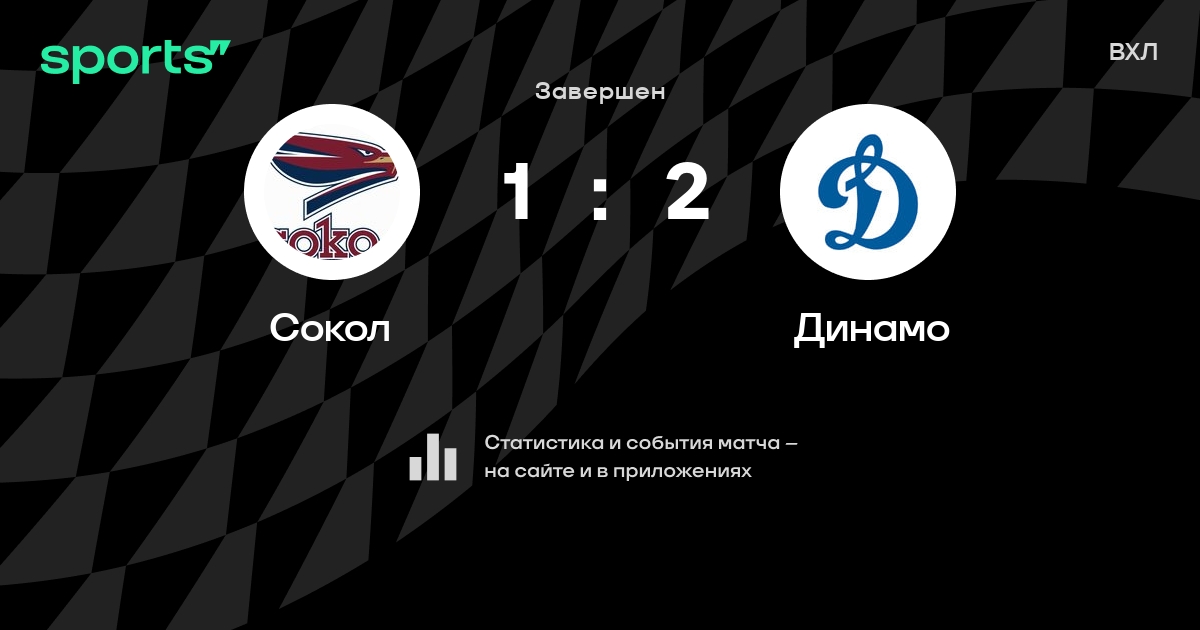 В прошедшем матче в рамках турнира ВХЛ состоялась встреча команд Сокол - Динамо со счетом 1 : 2.