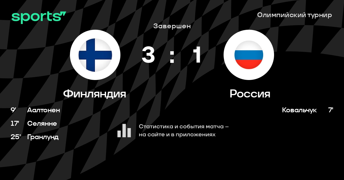 Всё, финита ля трагедия. Матч завершен. Финляндия обыграла Россию 3:1.