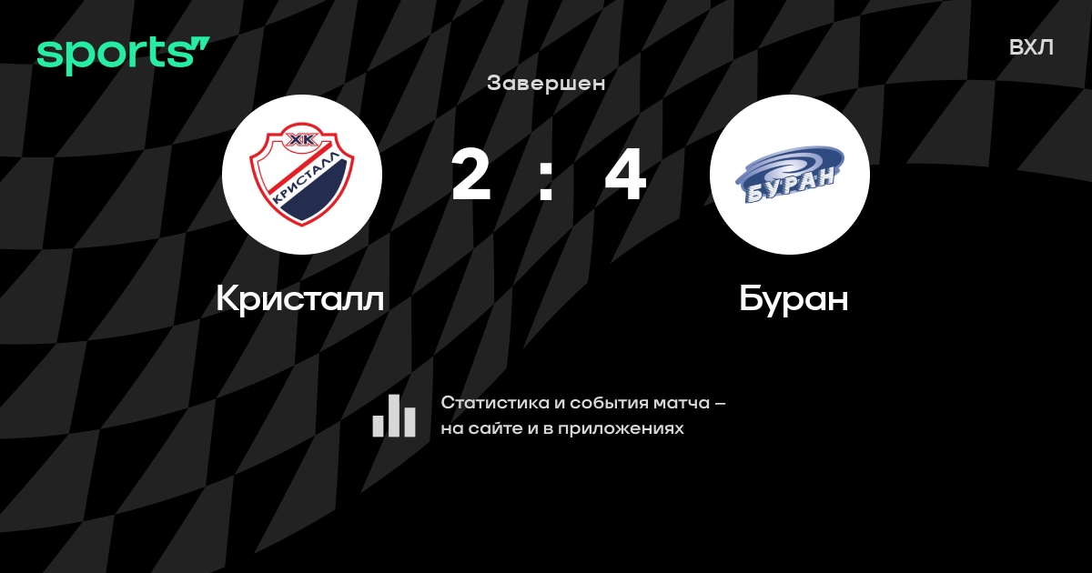 В прошедшем матче в рамках турнира ВХЛ состоялась встреча команд Кристалл - Буран со счетом 2 : 4.