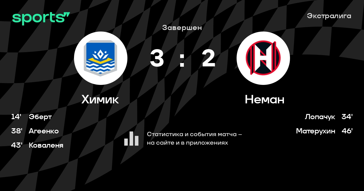 В прошедшем матче в рамках турнира Экстралига состоялась встреча команд Химик - Неман в городе Новополоцк (Беларусь) на стадионе Дворец культуры и спорта (вместимость - 1200)