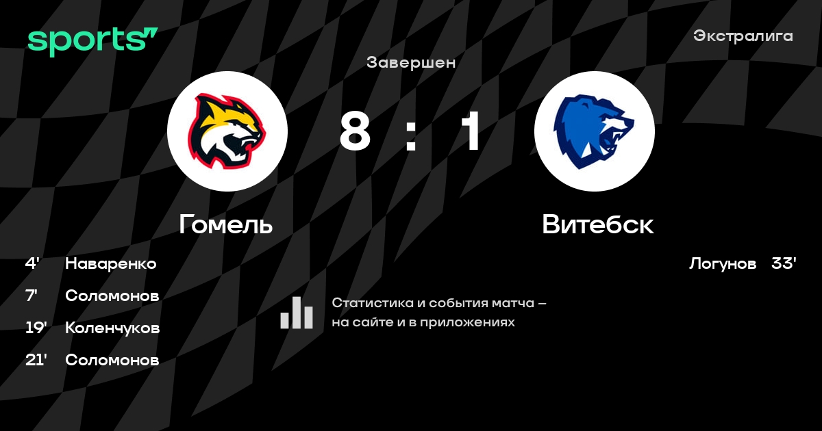 В прошедшем матче в рамках турнира Экстралига состоялась встреча команд Гомель - Витебск в городе Гомель (Беларусь) на стадионе Ледовый дворец Гомель (вместимость - 2700)