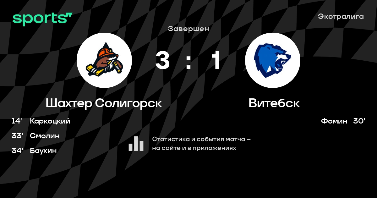 В прошедшем матче в рамках турнира Экстралига состоялась встреча команд Шахтер Солигорск - Витебск в городе Солигорск (Беларусь) на стадионе Ледовый дворец спорта Солигорск (вместимость - 1800)