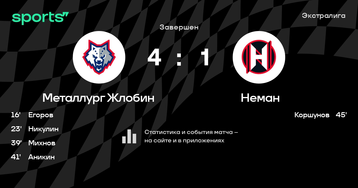 В прошедшем матче в рамках турнира Экстралига состоялась встреча команд Металлург Жлобин - Неман в городе Жлобин (Беларусь) на стадионе Ледовый дворец Металлург (вместимость - 2018)