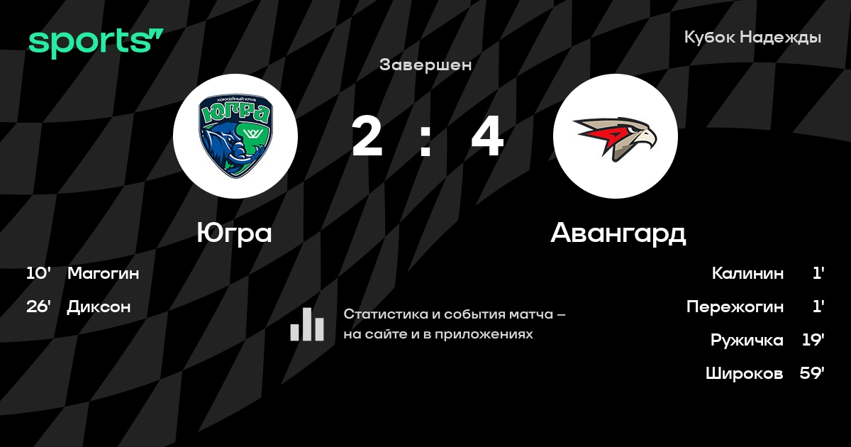 В прошедшем матче в рамках турнира Кубок Надежды Кубок Надежды. Четвертьфинал состоялась встреча команд Югра - Авангард в городе Ханты-Мансийск (Россия) на стадионе Арена-Югра (вместимость - 5500)