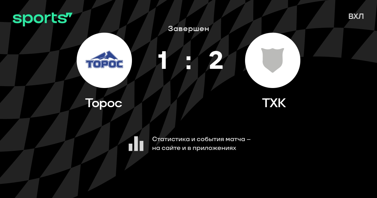 В прошедшем матче в рамках турнира ВХЛ состоялась встреча команд Торос - ТХК со счетом 1 : 2.
