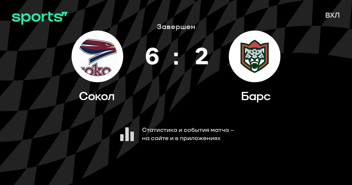 В прошедшем матче в рамках турнира ВХЛ состоялась встреча команд Сокол - Барс со счетом 6 : 2.