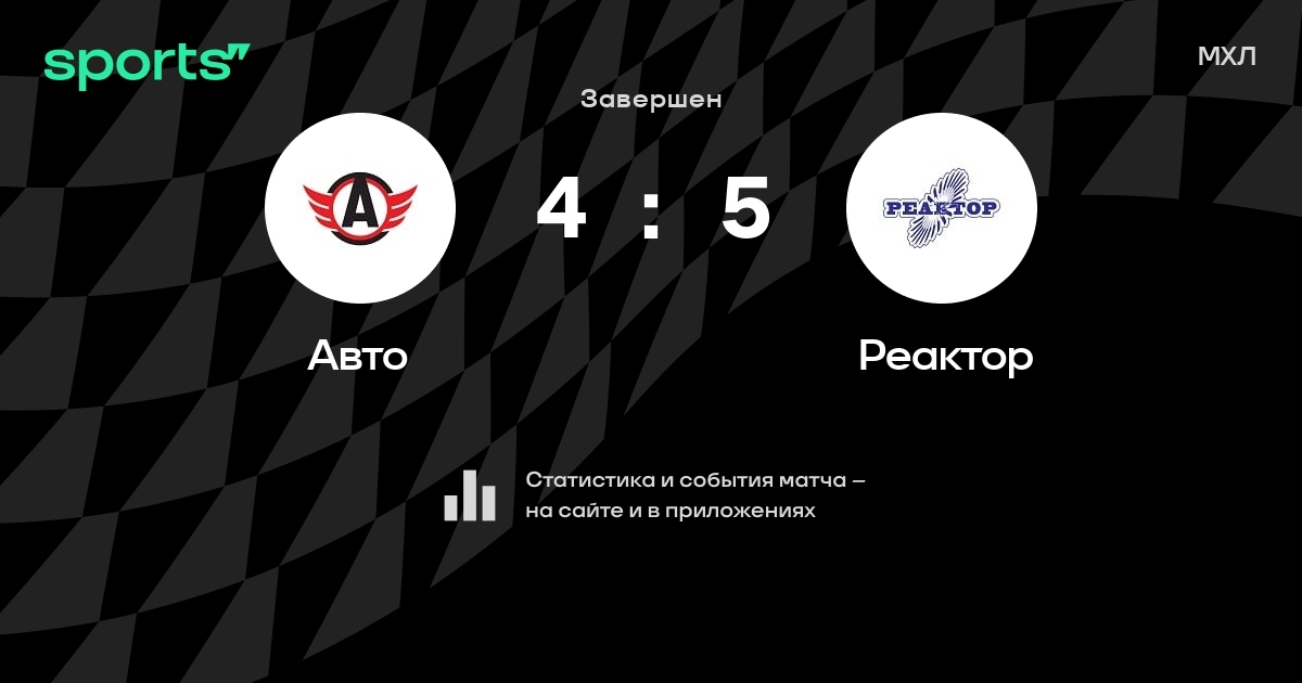 В прошедшем матче в рамках турнира МХЛ состоялась встреча команд Авто - Реактор со счетом 4 : 5.