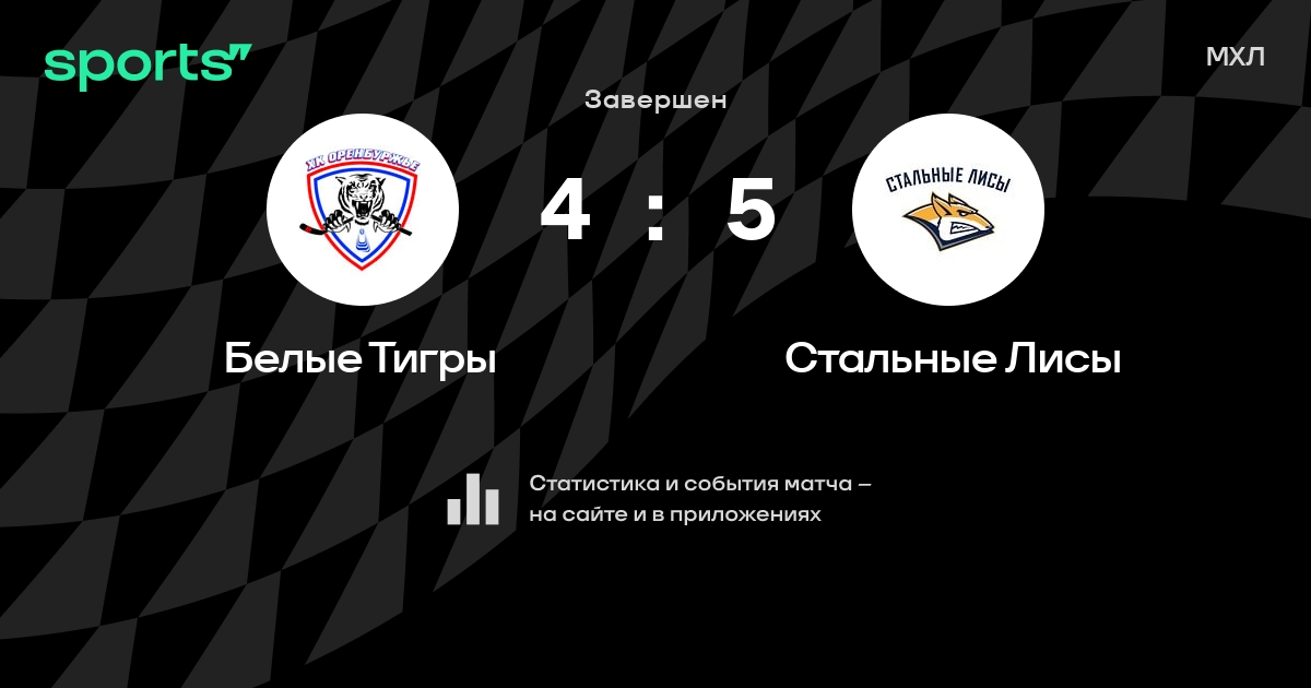 В прошедшем матче в рамках турнира МХЛ состоялась встреча команд Белые Тигры - Стальные Лисы со счетом 4 : 5.