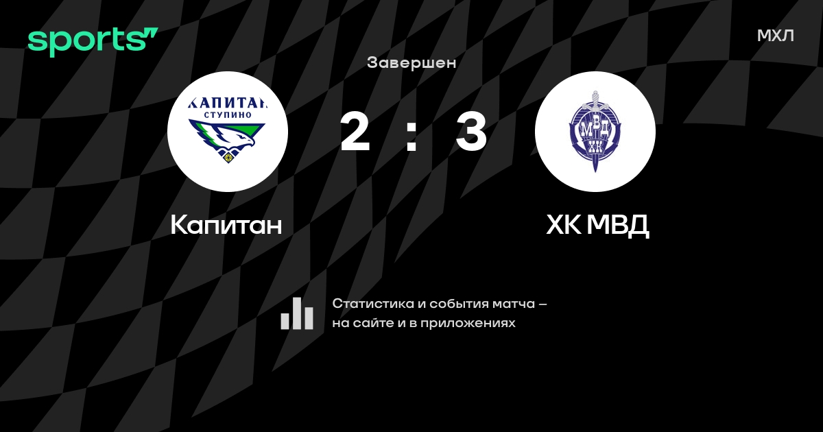 В прошедшем матче в рамках турнира МХЛ состоялась встреча команд Капитан - ХК МВД со счетом 2 : 3.