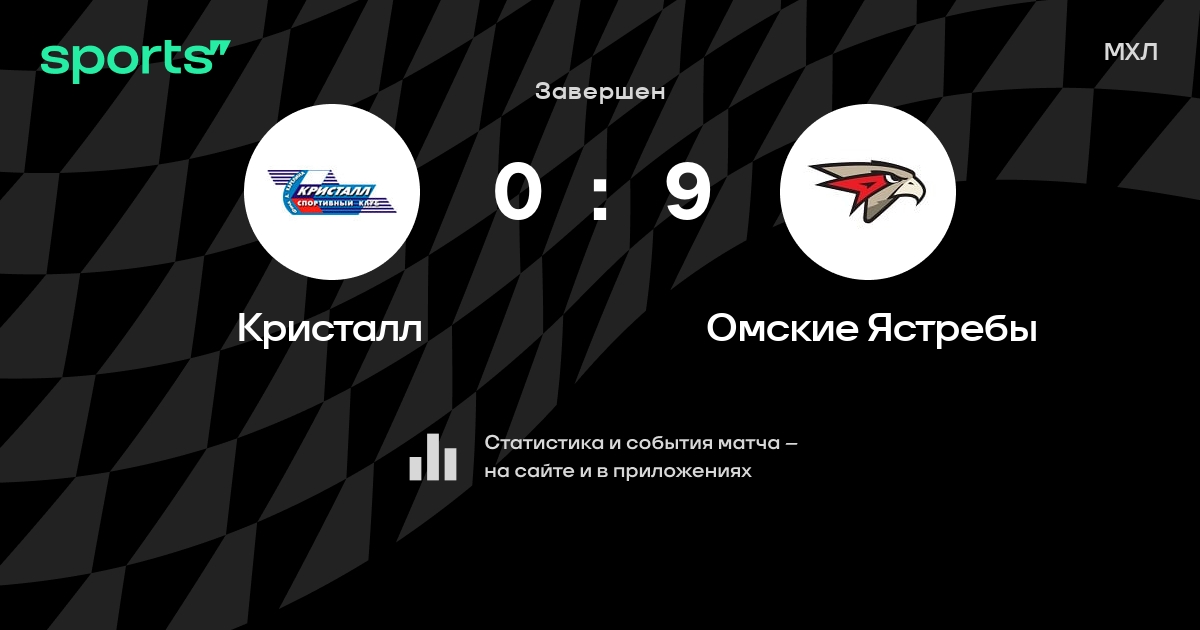 В прошедшем матче в рамках турнира МХЛ состоялась встреча команд Кристалл - Омские Ястребы со счетом 0 : 9.