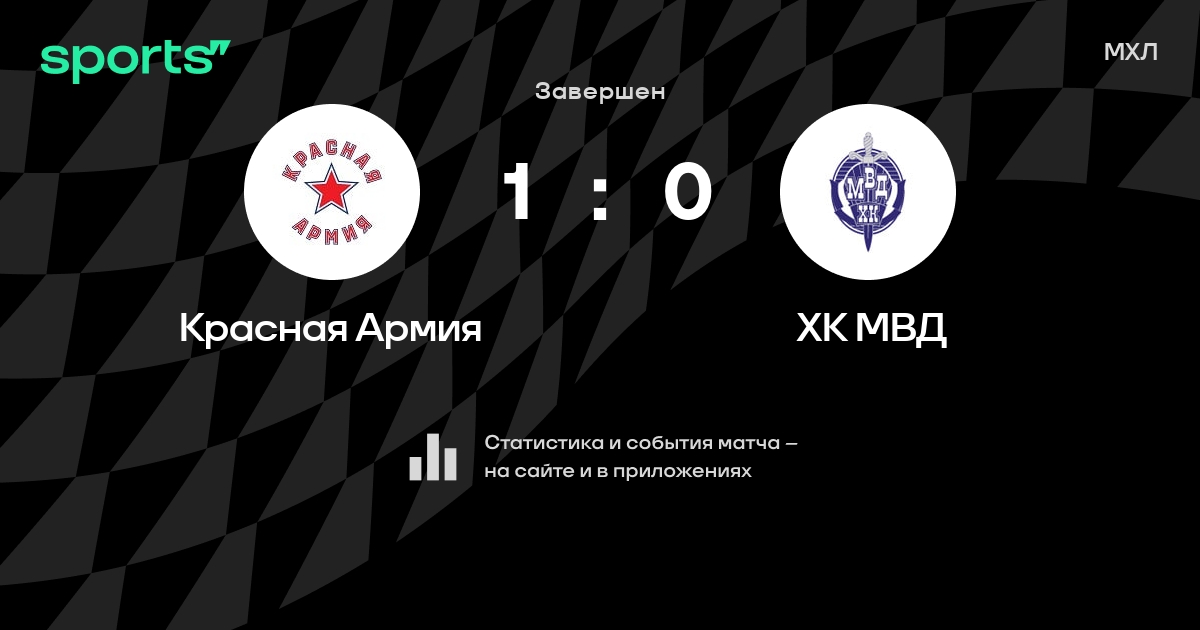 В прошедшем матче в рамках турнира МХЛ состоялась встреча команд Красная Армия - ХК МВД со счетом 1 : 0.