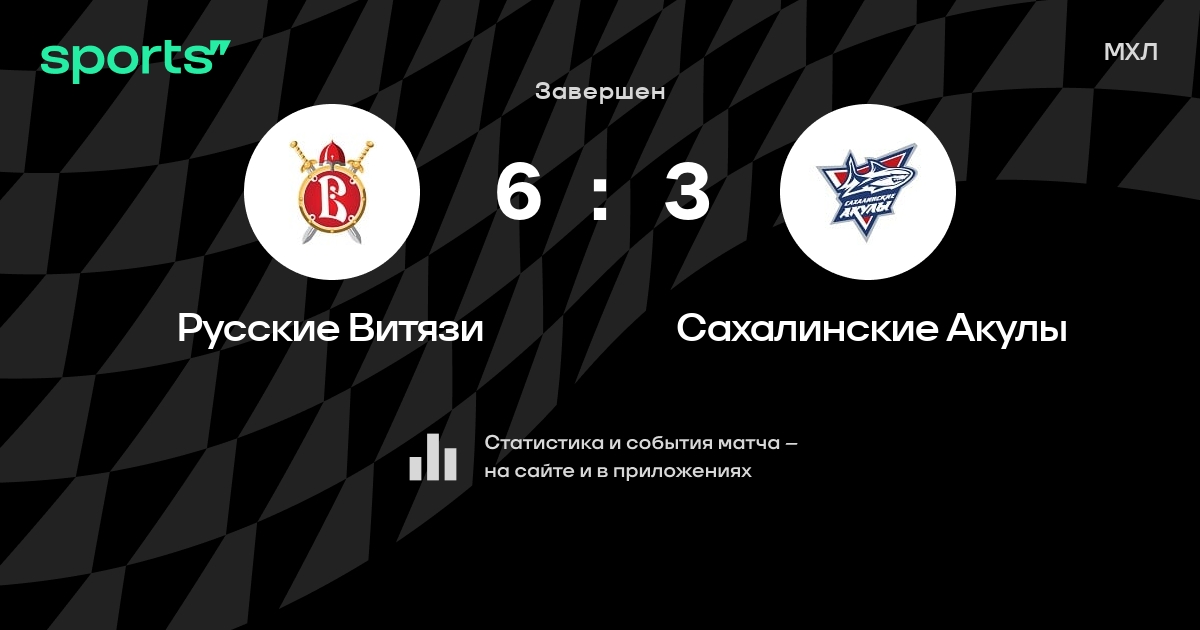 В прошедшем матче в рамках турнира МХЛ состоялась встреча команд Русские Витязи - Сахалинские Акулы со счетом 6 : 3.