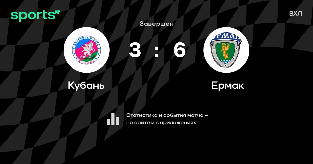 В прошедшем матче в рамках турнира ВХЛ состоялась встреча команд Кубань - Ермак со счетом 3 : 6.