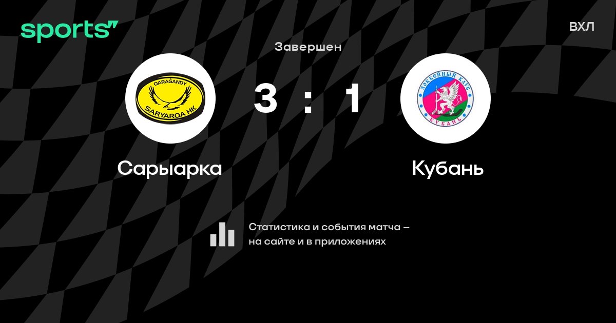 В прошедшем матче в рамках турнира ВХЛ состоялась встреча команд Сарыарка - Кубань со счетом 3 : 1.