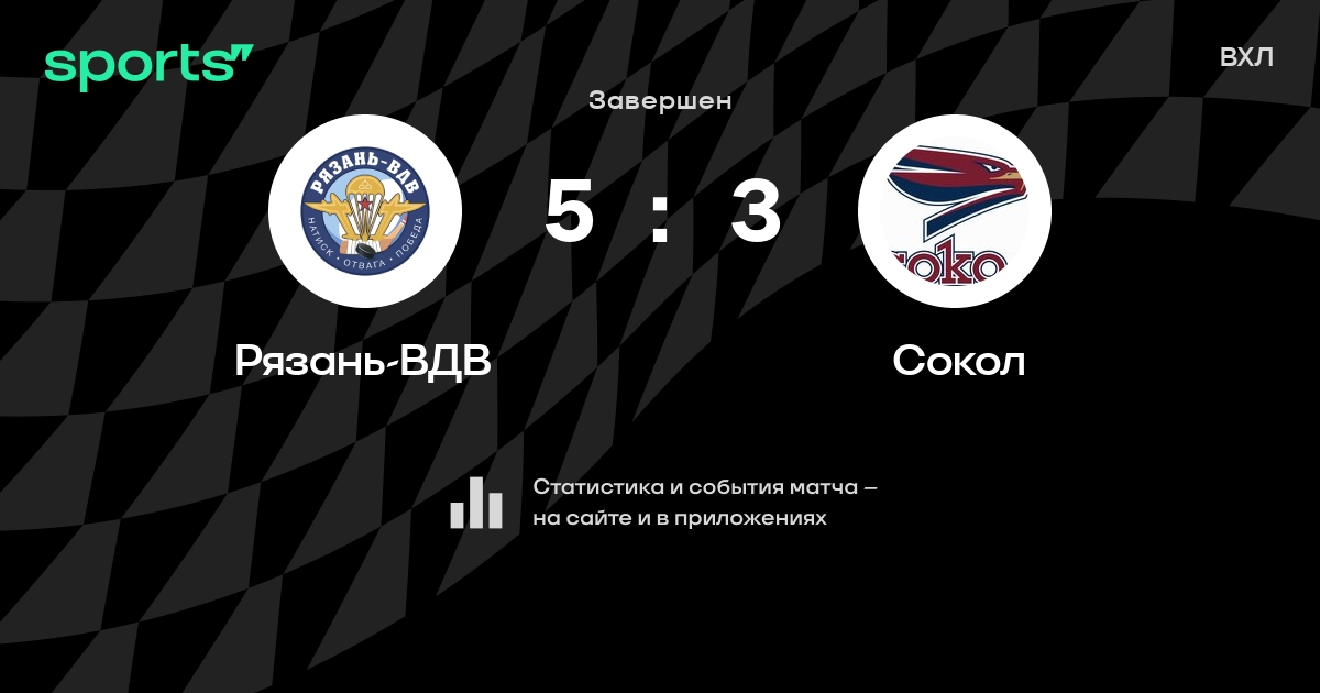 В прошедшем матче в рамках турнира ВХЛ состоялась встреча команд Рязань-ВДВ - Сокол со счетом 5 : 3.