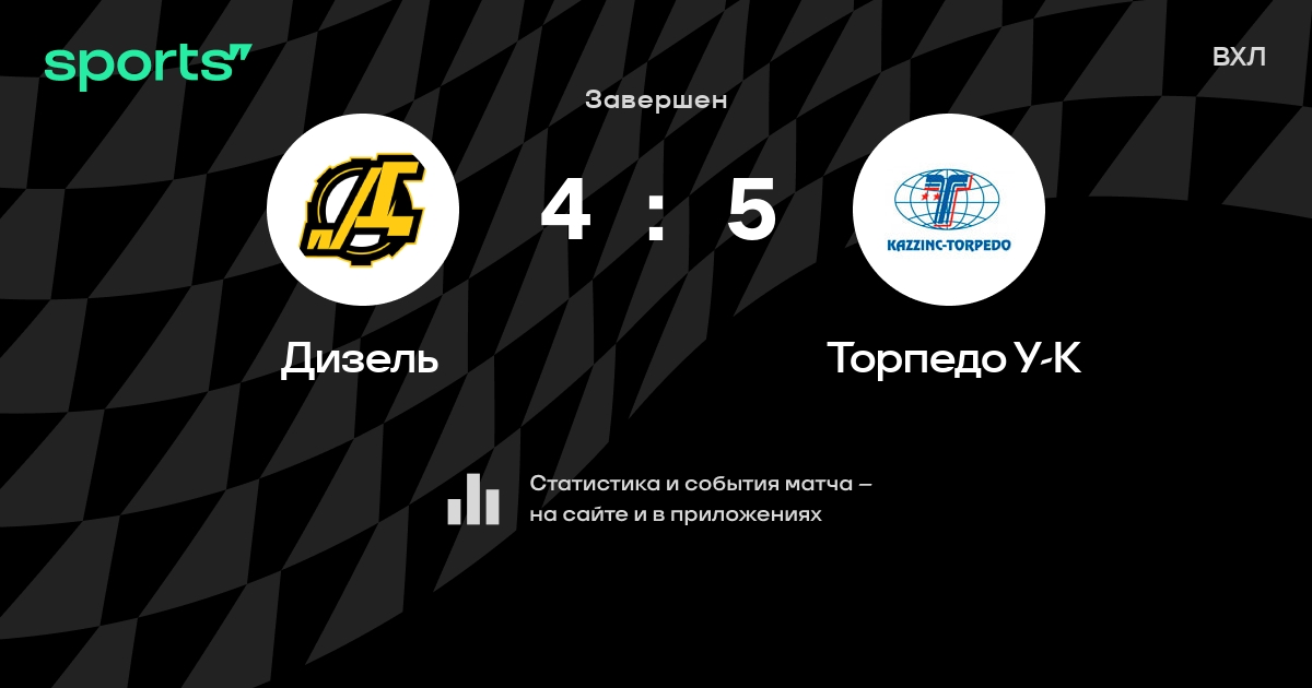 В прошедшем матче в рамках турнира ВХЛ состоялась встреча команд Дизель - Торпедо У-К со счетом 4 : 5.