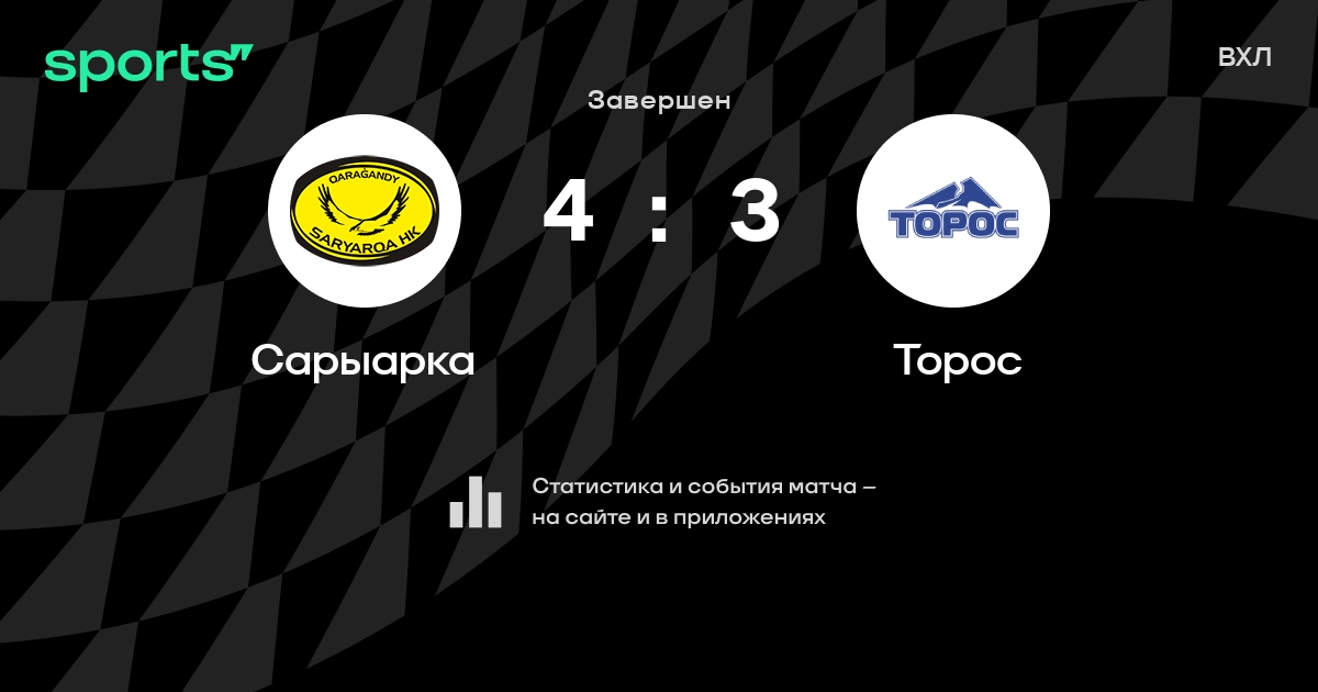 В прошедшем матче в рамках турнира ВХЛ состоялась встреча команд Сарыарка - Торос со счетом 4 : 3.