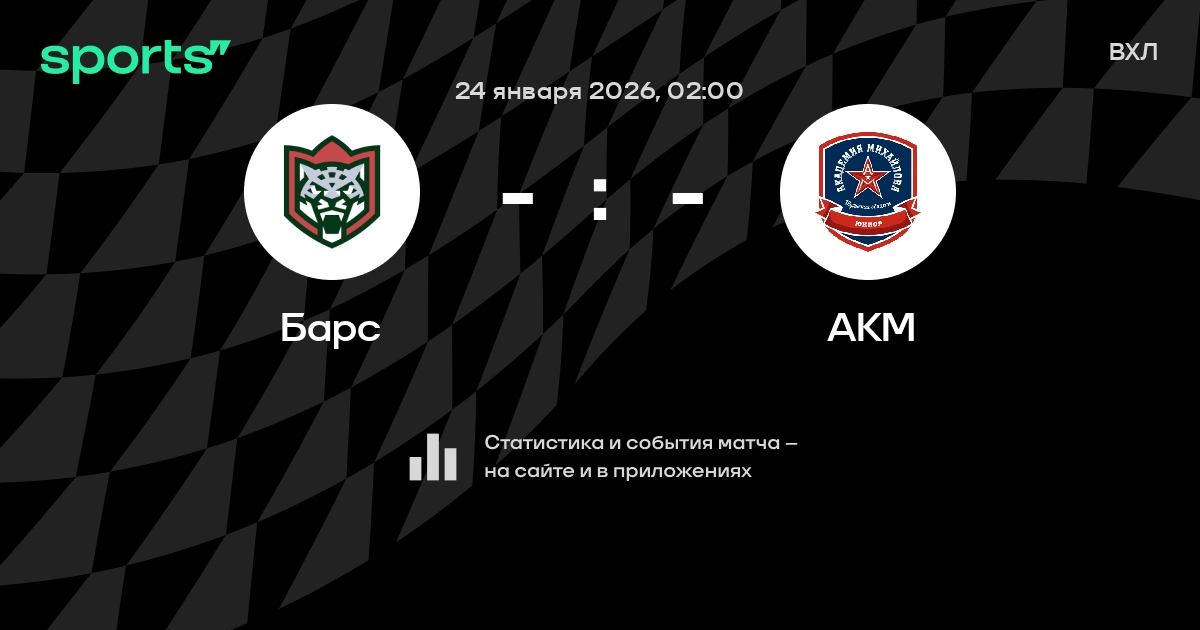В предстоящем матче в рамках турнира ВХЛ пройдет встреча команд Барс - АКМ в городе Казань (Россия) на стадионе Дворец спорта (вместимость - 3523).