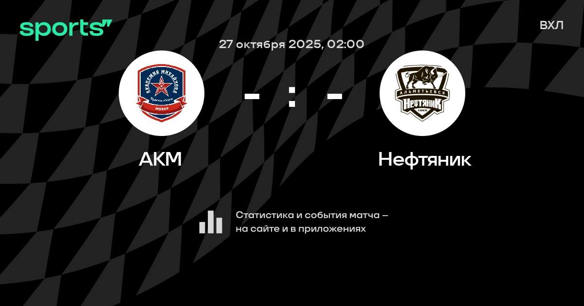 В предстоящем матче в рамках турнира ВХЛ пройдет встреча команд АКМ - Нефтяник в городе на стадионе Ice Palace.