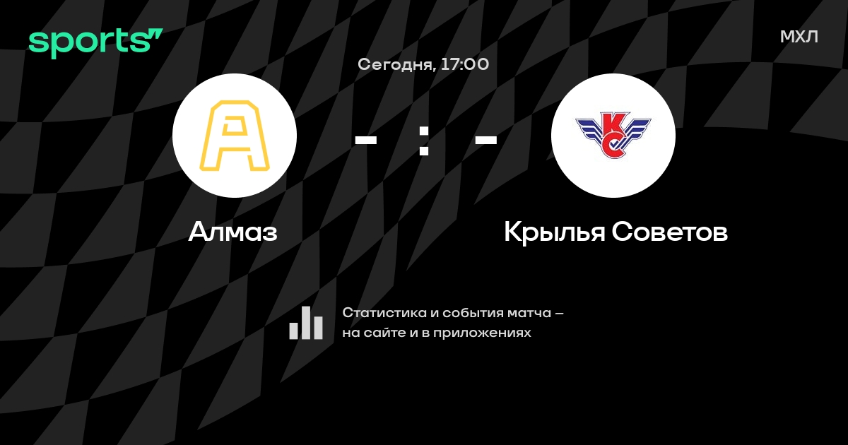 В предстоящем матче в рамках турнира МХЛ пройдет встреча команд Алмаз - Крылья Советов в городе Череповец (Россия) на стадионе Ледовый дворец (вместимость - 6000).