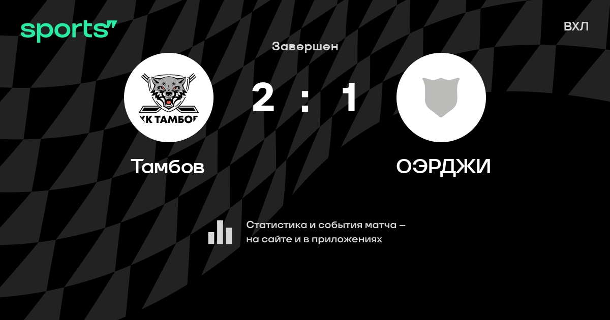 В прошедшем матче в рамках турнира ВХЛ состоялась встреча команд Тамбов - ОЭРДЖИ со счетом 2 : 1.