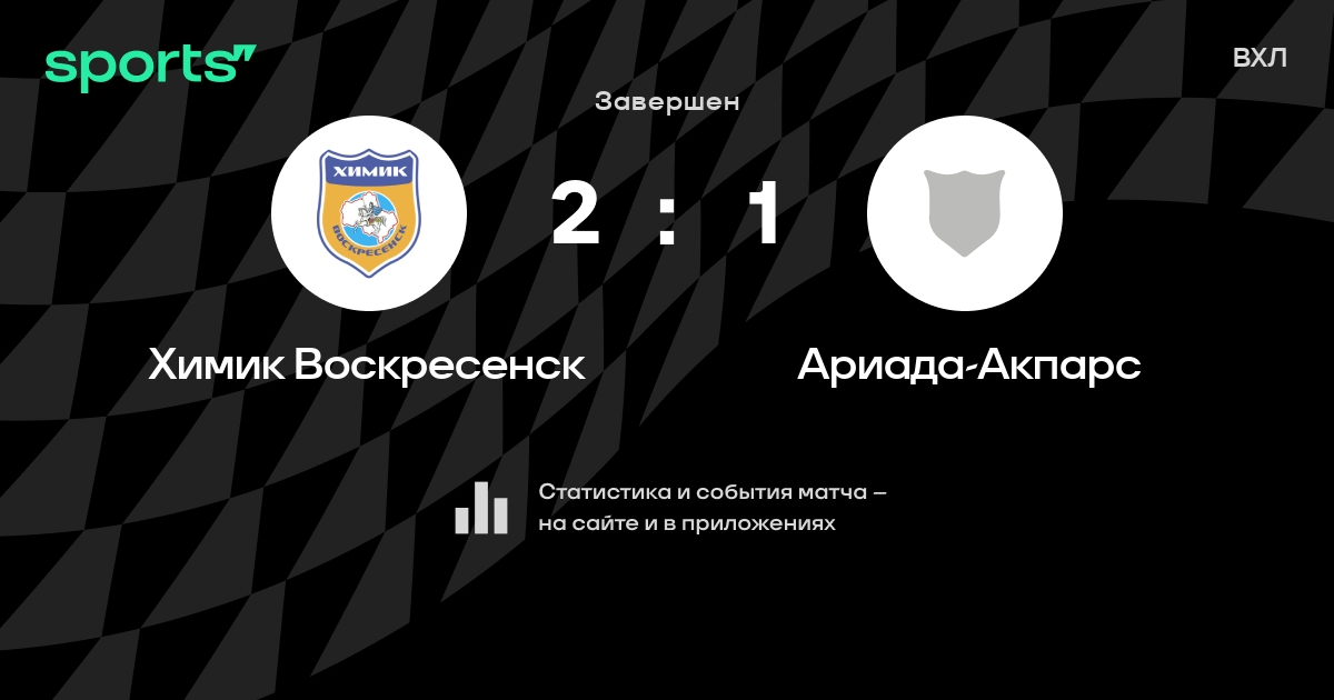 В прошедшем матче в рамках турнира ВХЛ состоялась встреча команд Химик Воскресенск - Ариада-Акпарс со счетом 2 : 1.