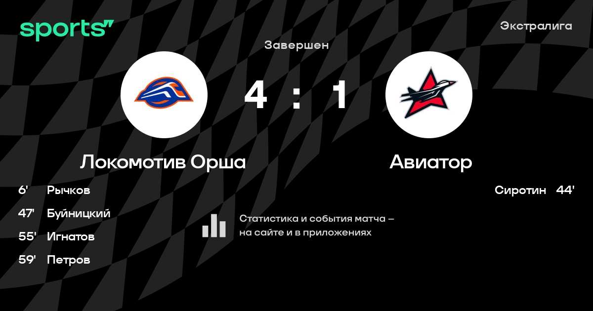 В прошедшем матче в рамках турнира Экстралига состоялась встреча команд Локомотив Орша - Авиатор в городе Орша (Беларусь) на стадионе Ледовая арена Орша (вместимость - 3500)