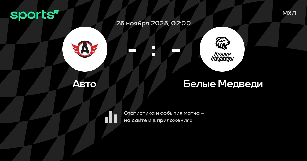 В предстоящем матче в рамках турнира МХЛ пройдет встреча команд Авто - Белые Медведи в городе на стадионе Ledovaya Arena Im. A. Kozitsyna.