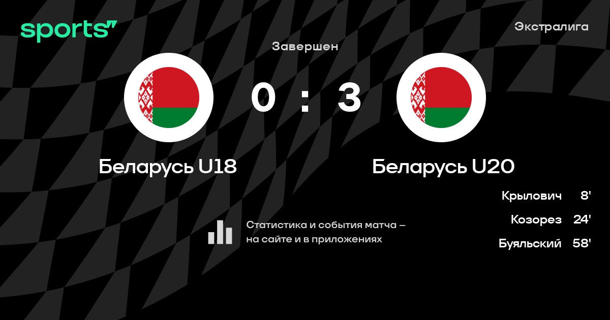 В прошедшем матче в рамках турнира Экстралига состоялась встреча команд Беларусь U18 - Беларусь U20 в городе Острошицкий Городок (Беларусь) на стадионе Ледовая арена Раубичи (вместимость - 120)