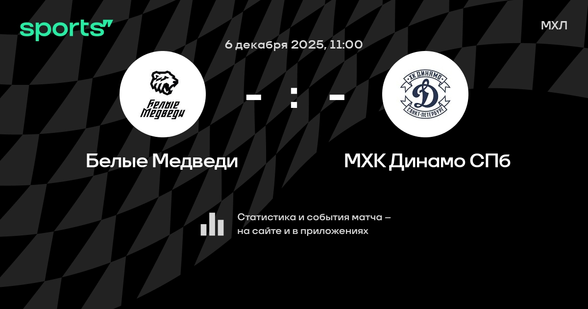 Смотрите текстовую онлайн трансляцию матча Белые Медведи - МХК Динамо СПб,