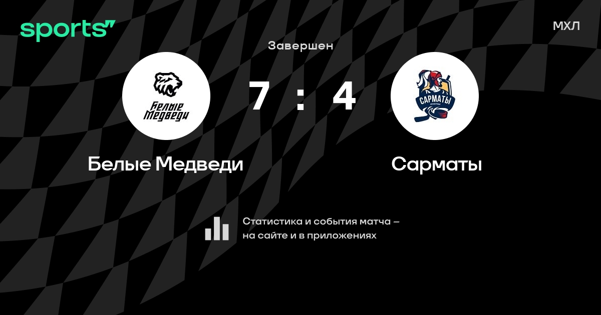 В прошедшем матче в рамках турнира МХЛ состоялась встреча команд Белые Медведи - Сарматы в городе Челябинск (Россия) на стадионе Арена Трактор (вместимость - 7500)