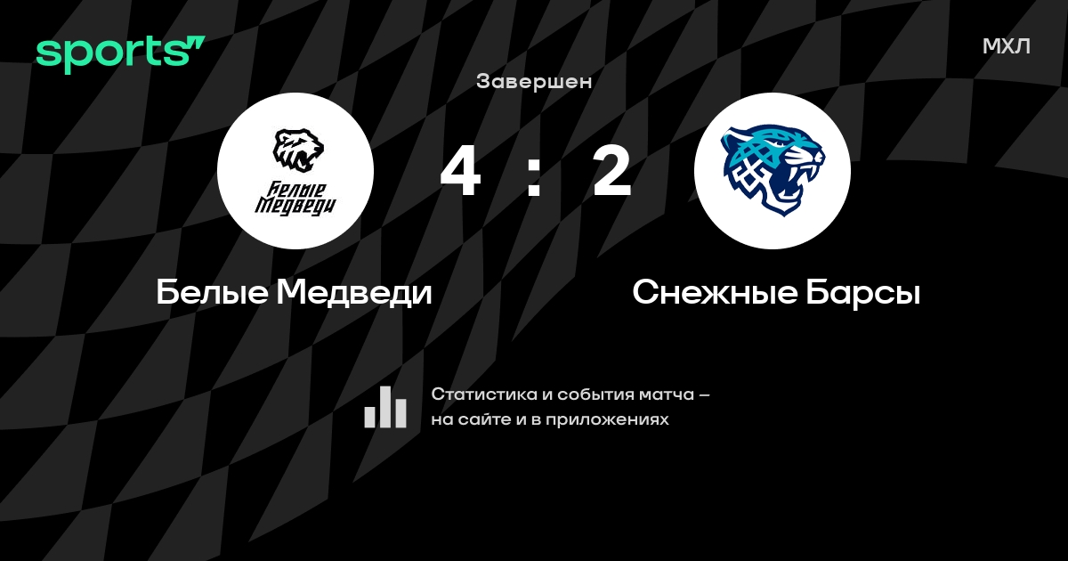 В прошедшем матче в рамках турнира МХЛ состоялась встреча команд Белые Медведи - Снежные Барсы в городе Челябинск (Россия) на стадионе Арена Трактор (вместимость - 7500)