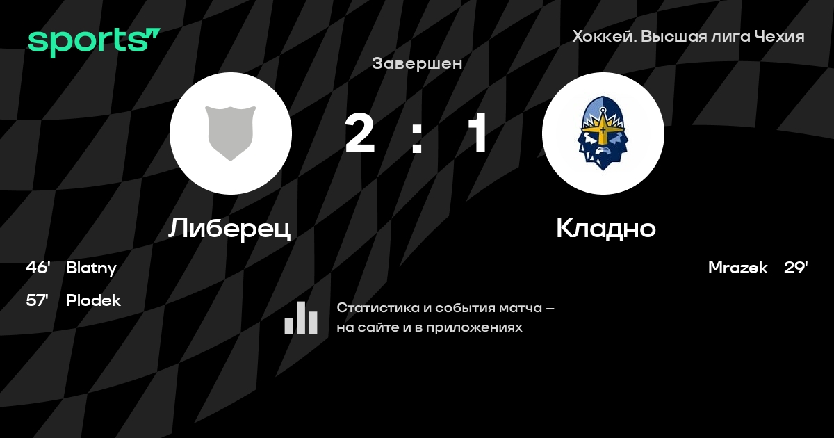 В прошедшем матче в рамках турнира Хоккей. Высшая лига Чехия состоялась встреча команд Либерец - Кладно со счетом 2 : 1.