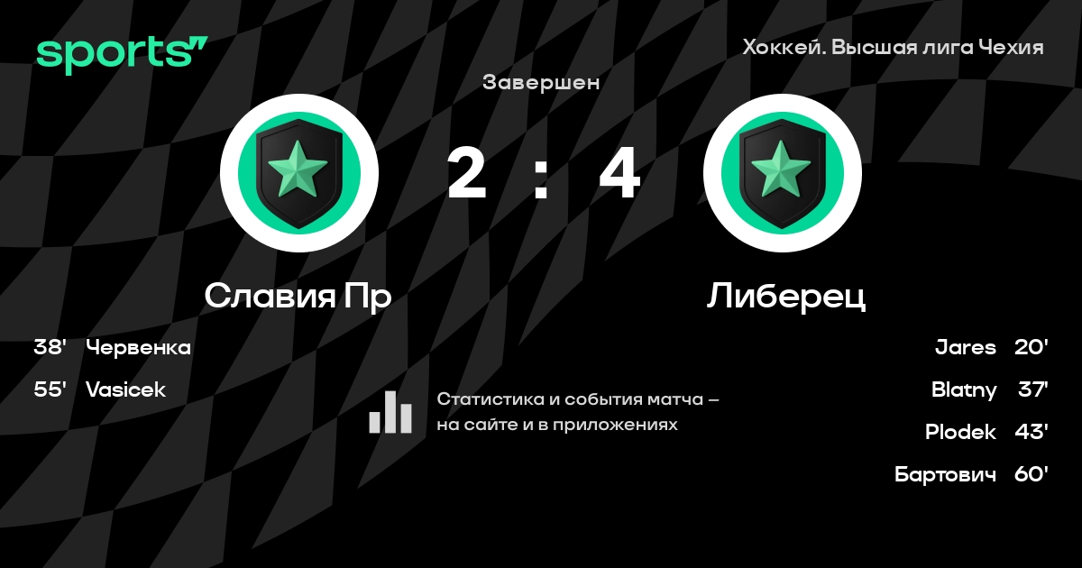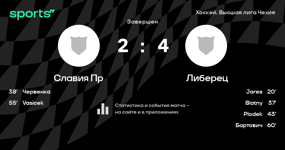 В прошедшем матче в рамках турнира Хоккей. Высшая лига Чехия состоялась встреча команд Славия Пр - Либерец со счетом 2 : 4.