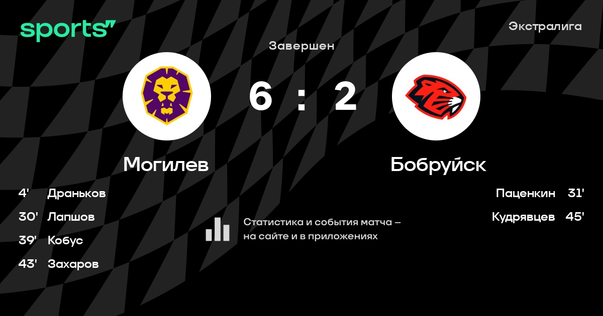 В прошедшем матче в рамках турнира Экстралига состоялась встреча команд Могилев - Бобруйск в городе Могилев (Беларусь) на стадионе Ледовый дворец спорта Могилев (вместимость - 3048)