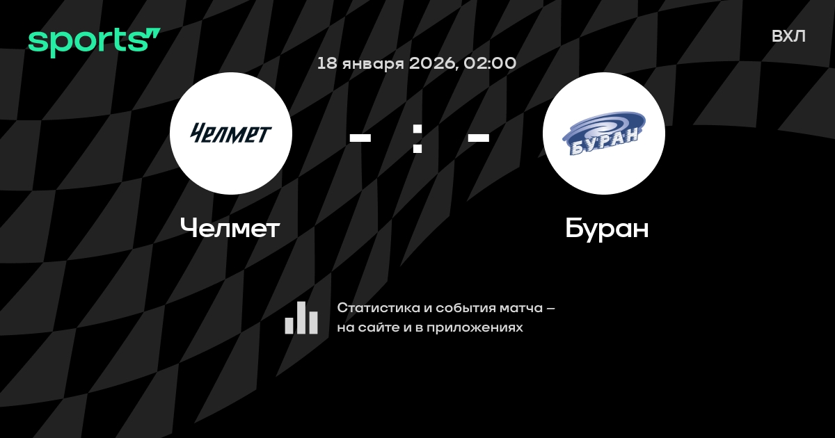 В предстоящем матче в рамках турнира ВХЛ пройдет встреча команд Челмет - Буран в городе на стадионе Sports Palace Yunost.