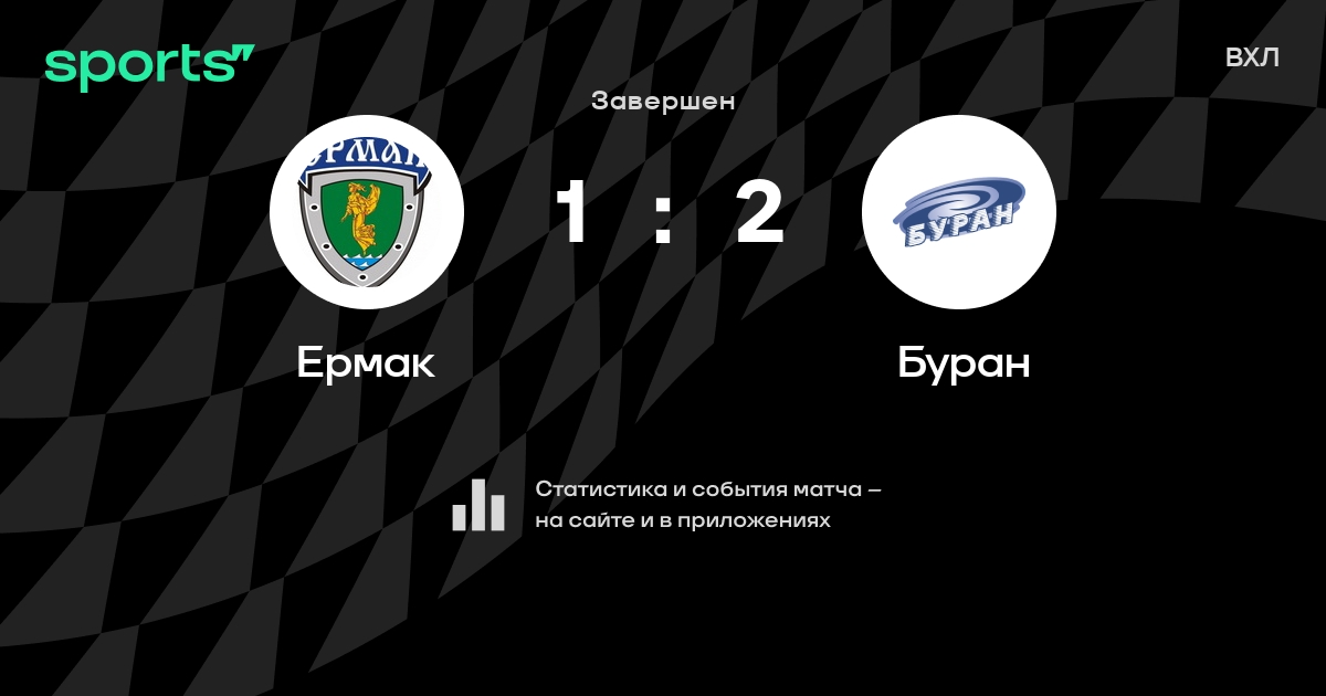 В прошедшем матче в рамках турнира ВХЛ состоялась встреча команд Ермак - Буран в городе на стадионе Zimniy Dvorets Sporta Yermak со счетом 1 : 2.
